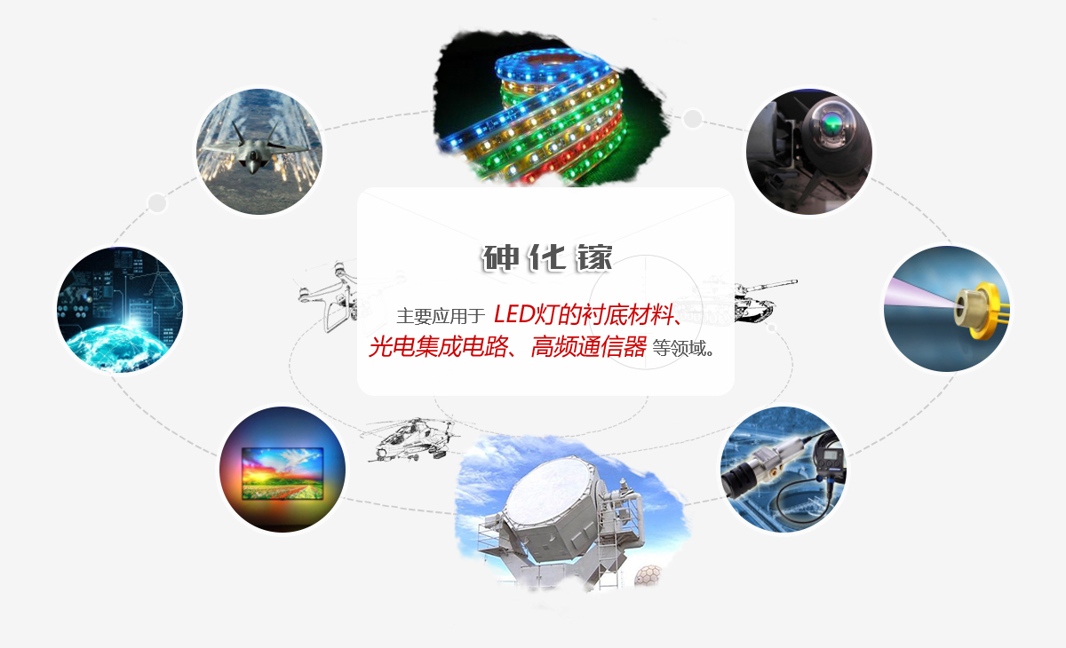 云南鍺業(yè)生產(chǎn)的2-6英寸半導(dǎo)體級以及半絕緣體砷化鎵晶體和襯底被廣泛應(yīng)用于納米級半導(dǎo)體集成電路以及LED通用照明領(lǐng)域。 此外,公司還成功投產(chǎn)了具有國際先進水平的2-4英寸磷化銦襯底生產(chǎn)線。產(chǎn)品被廣泛應(yīng)用于微波振蕩器與放大器、光纖通訊率放大器等領(lǐng)域。