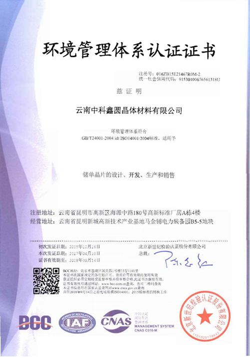 中科-環(huán)境管理體系認(rèn)證證書(shū)(中文)